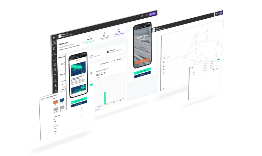 Appspotr är en allt-i-ett plattform med en inbyggd design funktion som gör det enkelt att skapa snygga och användarvänliga gränssnitt,  och utvecklingsverktyg som gör det möjligt att koda utan tidigare erfarenhet, är det enkelt att skapa en app som imponerar.